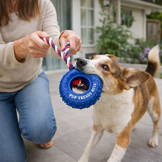 Rubber Tire Dog Chew Toy with Cotton Rope Handle