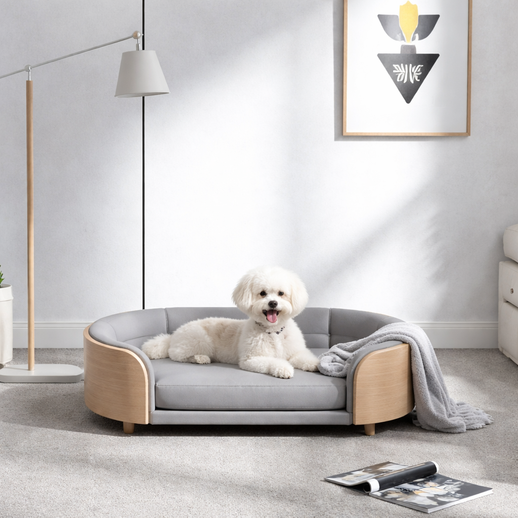 Elevated Pet Bed Sofa With Curved Wood Frame